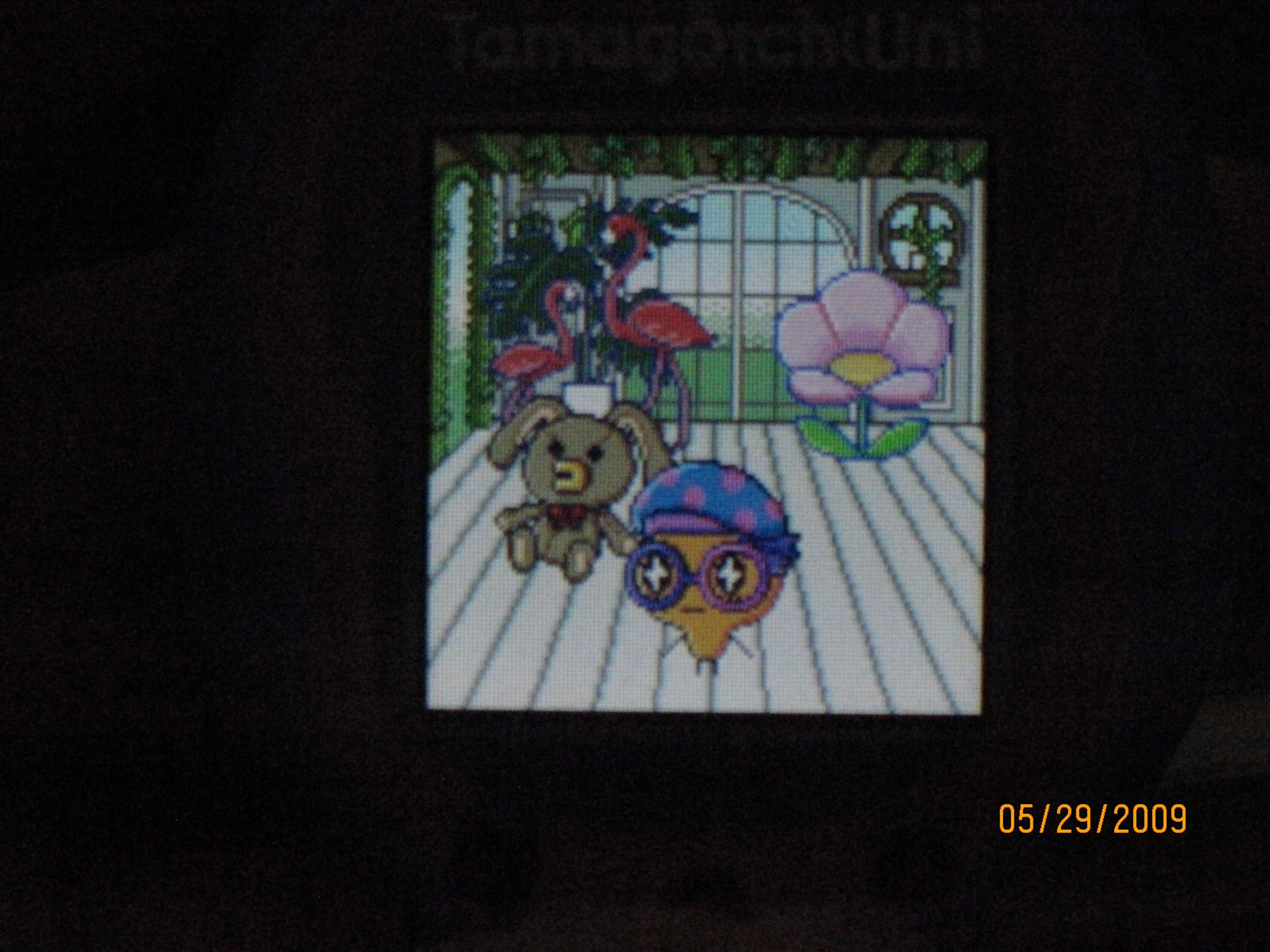 one thing i DID do today is play with my tamagotchi uni. i love this thing, genuinely. ruby got it for me for my birthday a while ago after hearing me talk about wanting one, and i've been kinda putting off running it until i'm less stress-prone; the other day, i finally decided it was time!! as far as v-pets go, it's one of the least intrusive i've run; all the minigames are pretty easy, & meters run out at a slow enough rate that it's super easy to avoid care mistakes. the improved graphics, sound, & qol over previous color tamas are also much appreciated ^_^ the dressup mechanic is super nice too. speaking of which, here's my current tama: